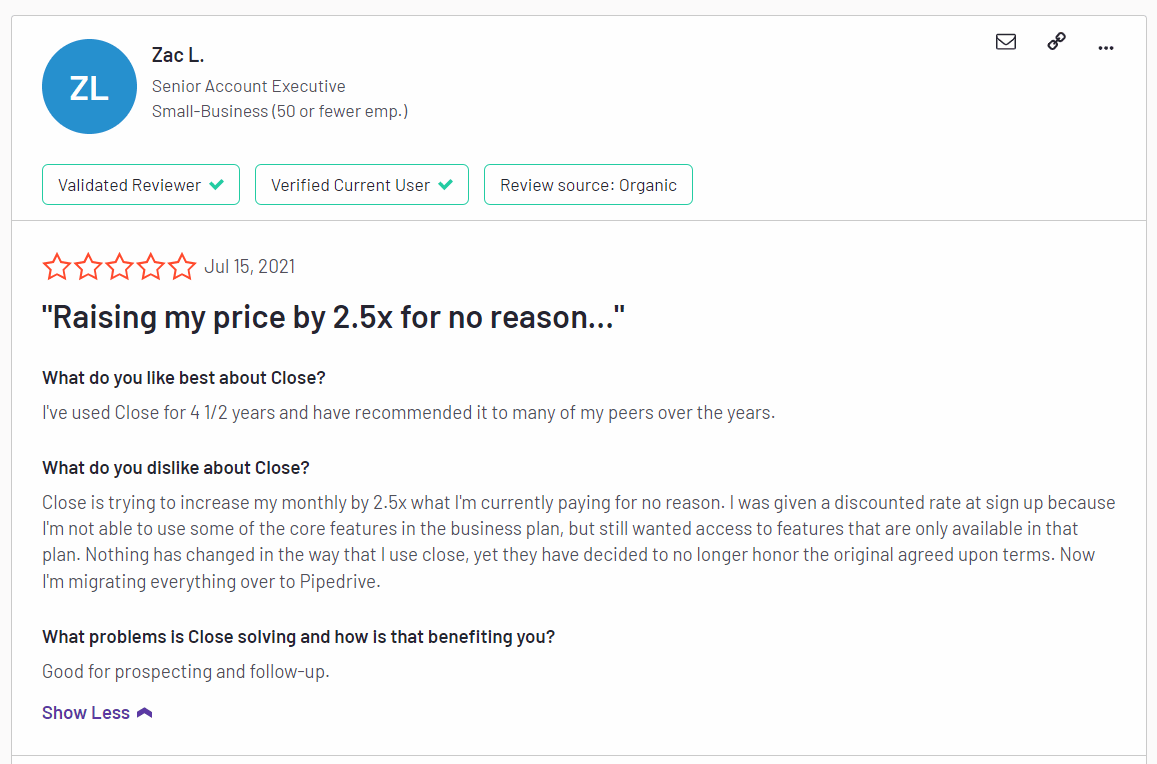 While Close CRM offers various pricing plans, some users have reported concerns about the cost compared to other CRM solutions in the market.